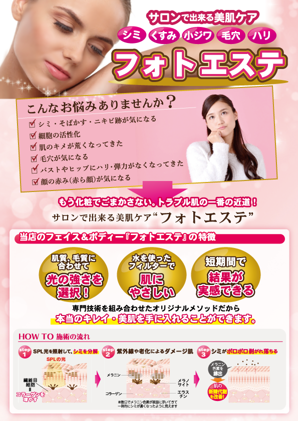 美肌の新常識!『フォトエステ』を提供しております。